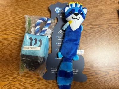 Two Bostons was kind to donate 3 containers of the dog treats and 2 plush toys